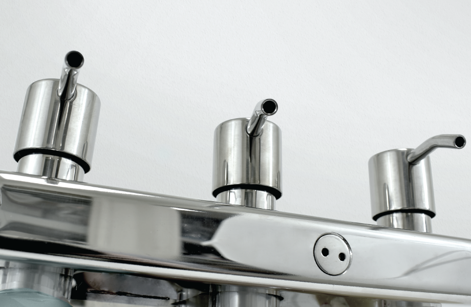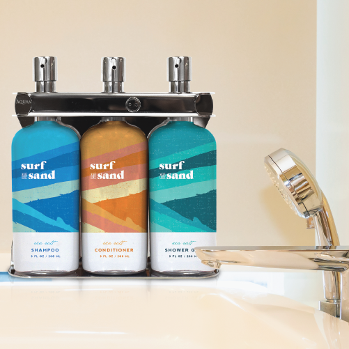 The Aquamenities dispenser offers a tamper-proof alternative to traditional amenities, with stainless steel pump caps locked with a stainless stell fasting mechanism. They can be custom designed to your properties' specifications and branding, and they are easily refillable by staff.
